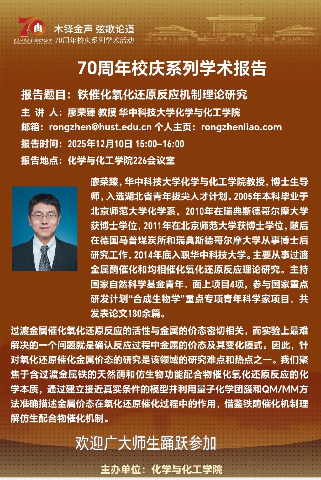 【12月10日】廖荣臻教授学术报告