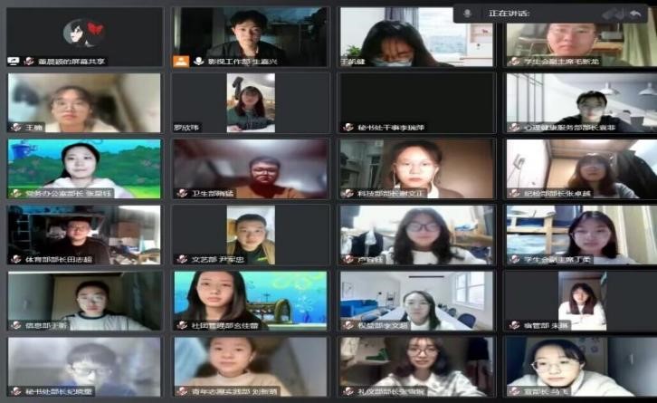 图为同学们观看线上会议