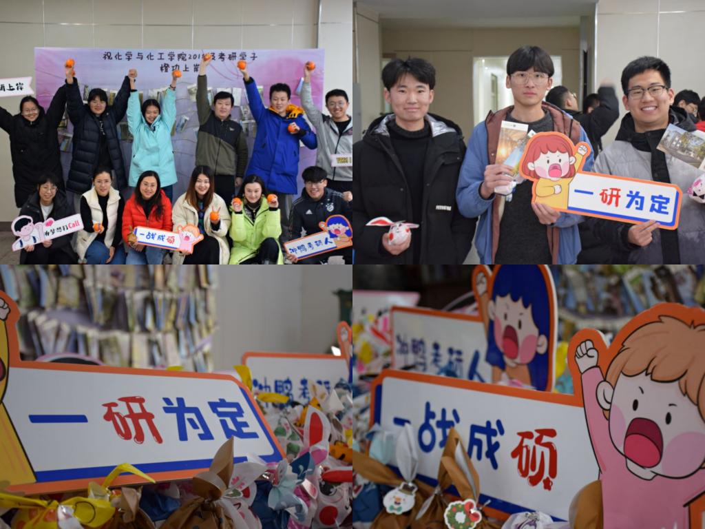 化学与化工学院通过倡导教师书写明信片、发放“橙”功礼、装饰院楼西墙、布置祝福空间等方式为考研学子加油助力。