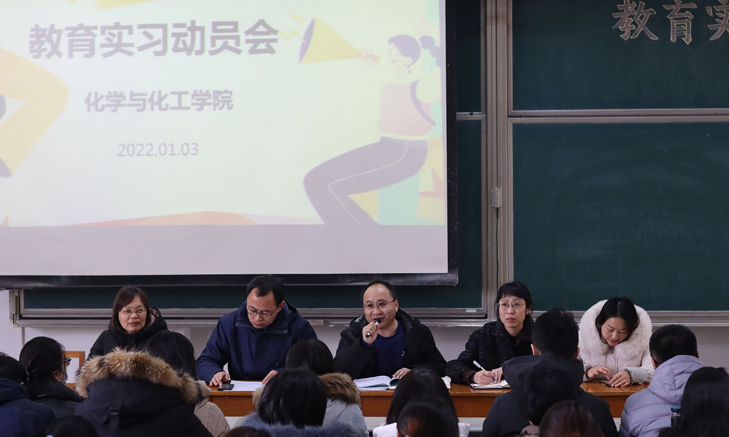 教法教研主任姬广敏细致具体地讲解了实习过程中应当注意的问题,为同学们提出了多点实习建议与指导。他强调要把握教学的重点与难点,将化学核心素养融入教学设计当中。并祝愿同学们在教育实习实践环节学有所成,学有所获。