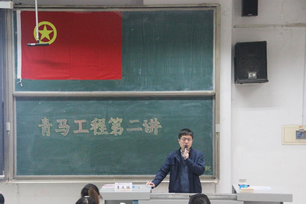 党委宣传部李文振老师主讲,学院“青马工程”大学生骨干培训班学员参加。