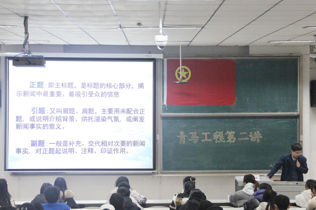李文振老师分别从新闻写作的文字报道和图片报道两方面进行讲解。首先,他带领成员们从基本原则、主要类别和主要元素来初步认识新闻写作。李老师深入浅出,以翔实的例子详细介绍了新闻标题、内容和结构的写作方法及注意事项。接下来,李老师在图片报道方面为学员们做出详细的指导。最后,他向培训班成员提出建议,希望大家同心协力做好校园宣传工作。伴随着热烈的掌声,“青马工程”第二讲圆满结束。