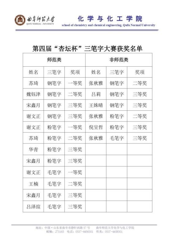 在学院党委副书记孙金玲的指导下,化院11名学子在决赛中获奖,其中师范组一等奖2人、二等奖3人、三等奖4人,非师范组二等奖1人、三等奖4人。获奖率达84.6%。