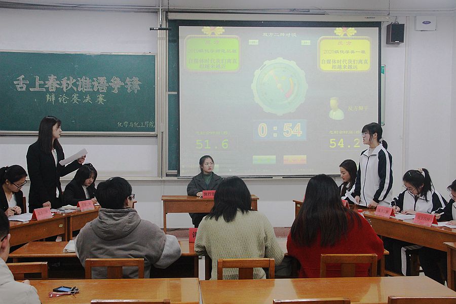 团委主办,学生会学习部承办的“舌上春秋,谁‘语’争锋”辩论赛决赛在综合楼305成功举办。校辩论队队长李艾嘉,校辩论队成员、化院辩论队队长王昊担任本次大赛评委。