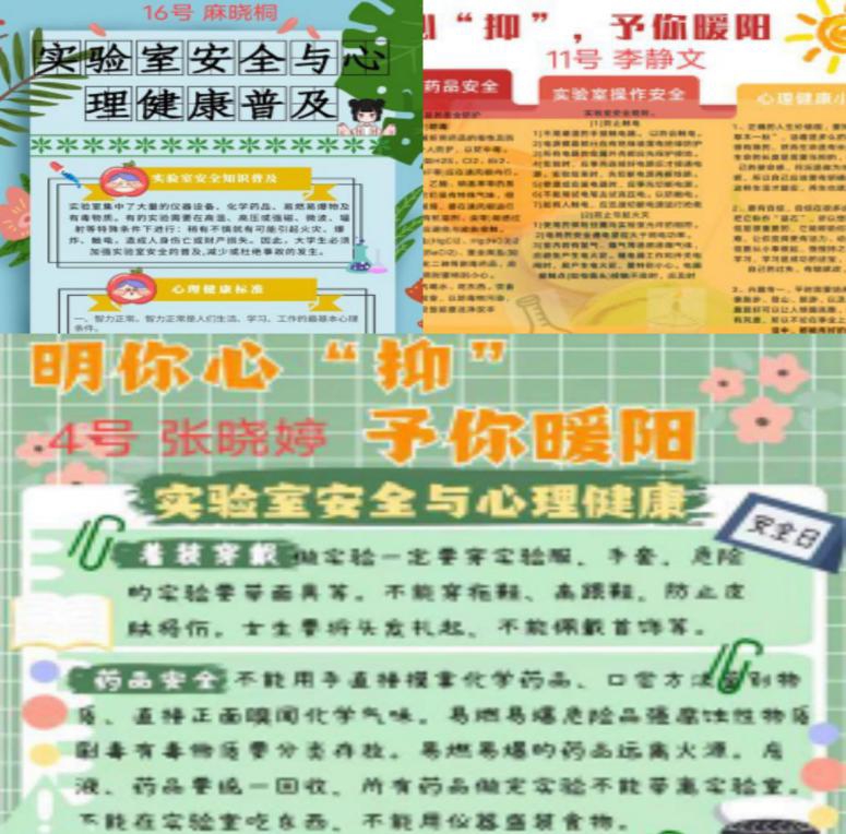 本次实验室安全及心理健康教育活动不仅给同学们提供了一个展示自我的机会,而且有效提升了学生的实验室安全知识与技能,有利于学院实验教学工作的开展。同时,为营造良好的校园安全氛围、建设和谐校园打下坚实基础。