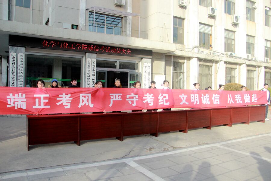 于院楼前广场举办诚信考试动员大会。出席本次大会的领导老师有党委副书记毛永正,团委书记孙金玲,辅导员毛艺霏、冯德浩、黄秉帅、蒋君。本次会议由辅导员蒋君主持。