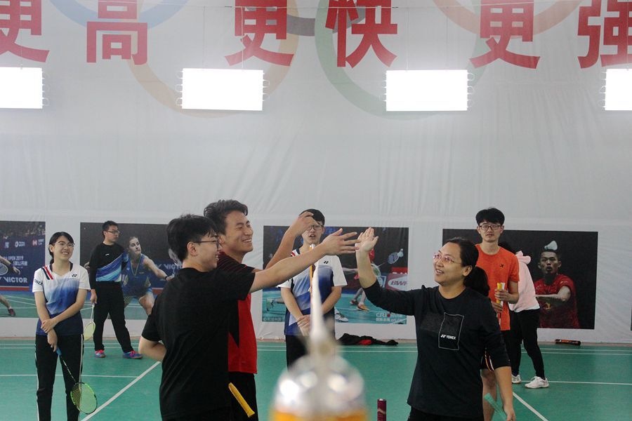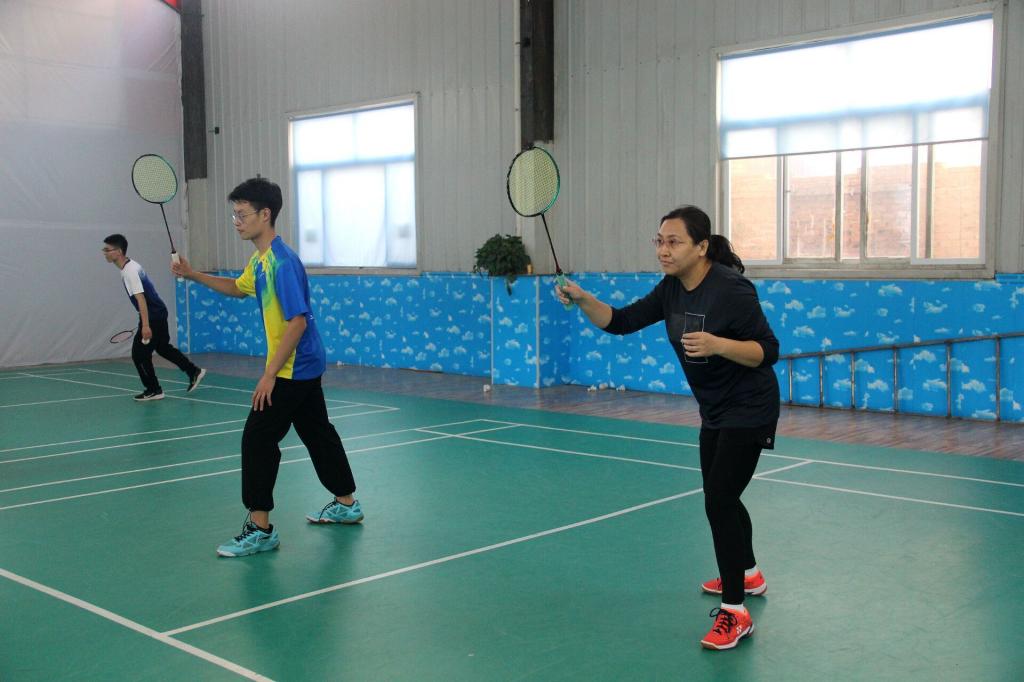 于传奇羽毛球馆举办师生交流赛,党委书记赵琪、团委书记孙金玲、学院老师及羽毛球队部分成员参加此次比赛。