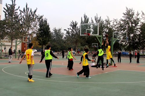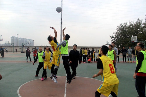 在西操场篮球场举办"师生篮球友谊赛"。学院党委副书记孙俊华亲临现场观看比赛,团委书记胡乃永及众位老师参加了此次比赛。