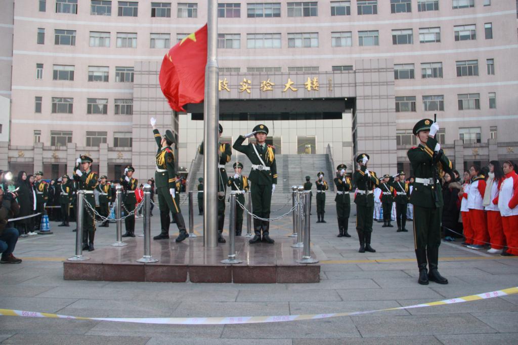 一腔爱国热情驱散冬日清晨的寒冷,升旗仪式不仅加深了同学们的爱国主义、集体主义情怀,也增强了民族责任感和使命感。民族复兴还需热血青年们的脊梁,中国梦的重任还要年轻一代的担当,前途似海,我们扬帆起航!