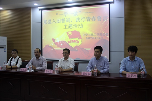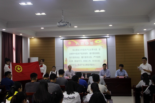 团委在院楼226会议室隆重举行“学习习近平总书记讲话,做合格共青团员”—— 重温入团誓词,践行青春誓言主题活动。学校团委副书记孔轶众,学院党委副书记孙俊华、学院团委书记胡乃永、辅导员张乾坤、王亚平及优秀团员代表参加。活动由学院团委书记胡乃永主持。