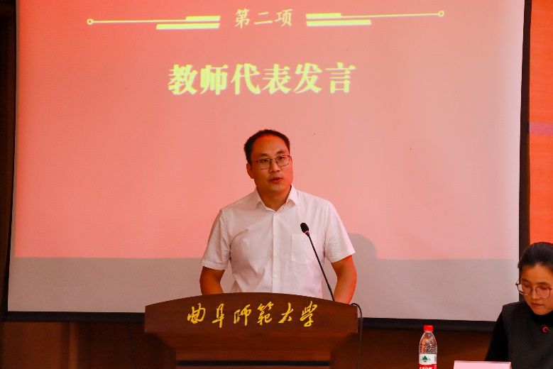 图为教师代表公培伟发言