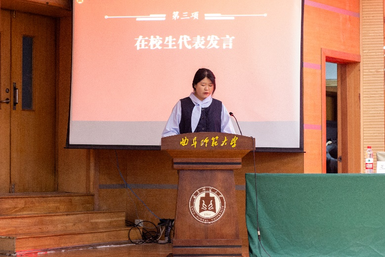 图为在校生代表王锡琳发言