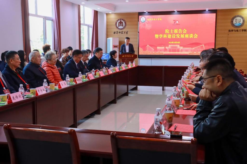 在专题报告中,王恩多院士满怀深情地回溯了四年求学岁月。她感慨,母校赐予的“自立、自强、自尊、自信”精神基因,以及那段筚路蓝缕、焚膏继晷的求学经历,早已熔铸为血脉里的坚韧与执着,为她日后攀登科学高峰奠定了不可撼动的基石。她怀着对母校的深厚情谊,结合数十年学术积累与前沿视野,围绕学科热点问题展开深入剖析,为化学学科建设与发展精准“把脉”,为科研创新指引方向,令在场师生与校友深受启发。